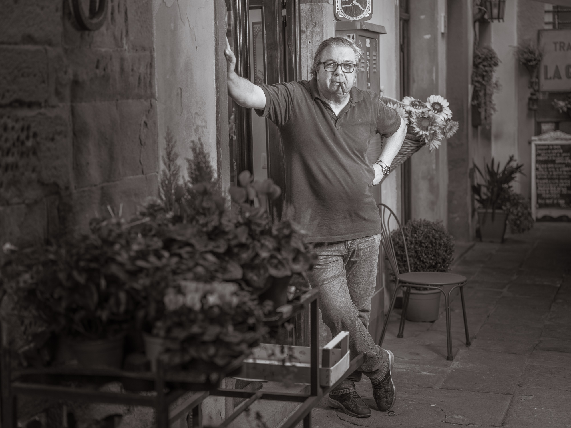 I always say – to myself and others – that making portraits is hard for me. What I find, though, is that once I ask the subject to pose, they freely collaborate with me to produce an image that conveys not only their likeness, but also some of their personality as well. Even though the time we spend is typically brief, the subject and I arrive at a mutually agreeable set of moments in which to make a photograph that pleases both of us.